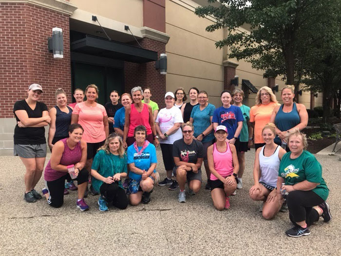 Wednesday – 4 miles  Ready for the Race group, intervals  5 x 1000m. My training group thought 1000m seemed like a lot when you added them all up (=5k!), but they handled it like champs!  I think they all surprised themselves at how well they did. Definitely something to be said about group motivation on tough workouts!