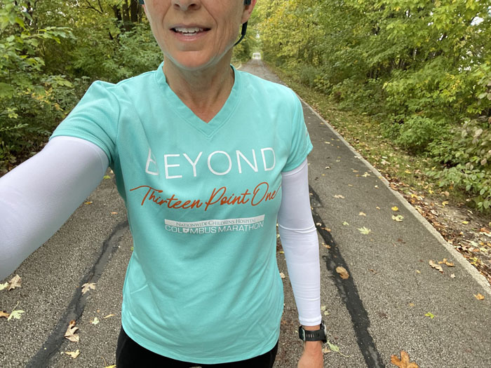 Sat – 6.5 miles (“long run” for the week!). I had a hard time falling asleep last night with glute/hamstring pain. I thought the answer might be some exercise, and not rest for the situation. Although this run didn’t feel the greatest, I took it easy and post run I think it was for the best. (wearing my Columbus race shirt. Not my favorite color, but it’s does match my shoes!). I’ve got the Churchill’s half marathon coming up on November 13th so I have to work back into my mileage and recover from all of these aches!!