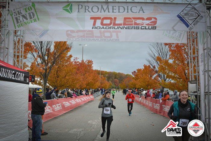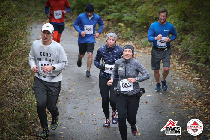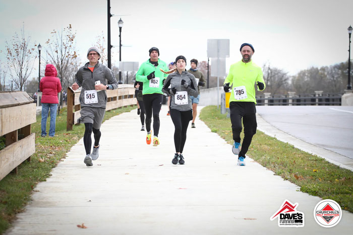 Churchill’s is the oldest race in Ohio (54 continuous years!), and it’s also one of the only point to point races in our area.  We start at a high school in Perrysburg, and end at a mall in Maumee.  The race course goes through neighborhoods but also along the Maumee River on both sides, which is hilly!  Some may not think it’s “hilly”, but it really is – as far as our flat area of Ohio goes!
