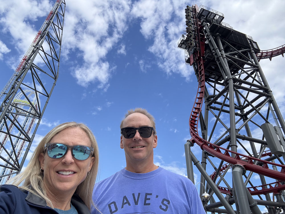The rest of the day was spent at our happy place, Cedar Point! With most kids back in school the park attendance was on the low side and we didn’t have to wait long at all for rides. We were on the big rides in 30 mins and walked right on to several others. It was chilly out and I wore a light jacket for most of the day. We even got to ride in the front row of Siren’s Curse, the new drop coaster!