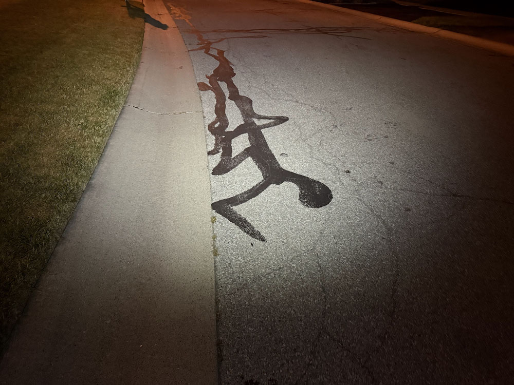 I stand corrected – apparently it was a raspberry scented Swatch band, but I swear it was strawberry. Close enough! Ok, my husband didn’t really see the figure in that road squiggle. I’m glad you agree!! The kitten was on the trail along the river. I hope someone has captured him. He was so cute!