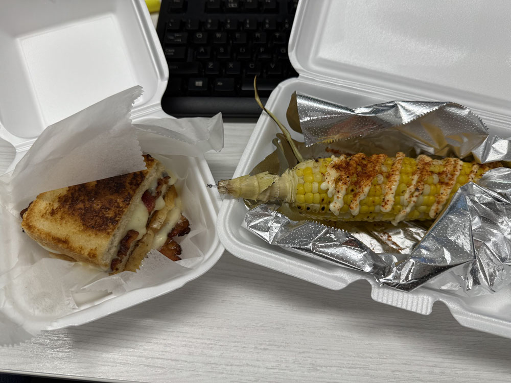 Weds – Rest day! An afternoon walk with my friend was my activity today. Always nice to catch up with her! I needed a long walk since it was also food truck day at work and I didn’t hold back. The street corn was delish!