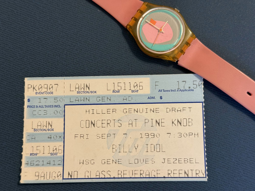 What made this concert really special is that we went to see Billy Idol 35 YEARS ago when we were first dating! Yes, that’s my concert ticket from back then and my Swatch which was in my ticket stash 🙂 It was at the same venue too! It was a great show and we had fun.