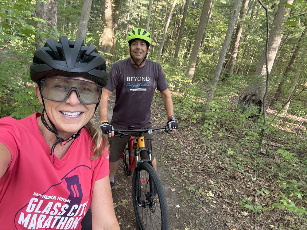 Mon – 10 miles running, 7 miles biking.  This was supposed to be 10 miles with pace miles, but phew, it was not happening.  I did run almost all 10 miles (with some rest breaks) but afterwards I was exhausted and napped for a bit.  But that wasn’t stopping me because it was a great day for some mountain biking.  We hit the trails for a late afternoon ride.