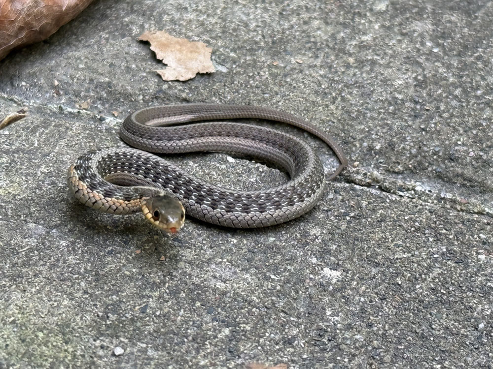 Tues – 2 mile walk.  My early morning alarm went off for my pre-work run.  Once again, my body said NO THANKS and I went back to sleep.  Oh well!  I did go on a park walk with my mom and saw the cutest snake.  It was only about 6 inches long but had the attitude of a cobra.  Instead of quietly slithering off the path, he stopped and hissed at us three times.  LOL!!