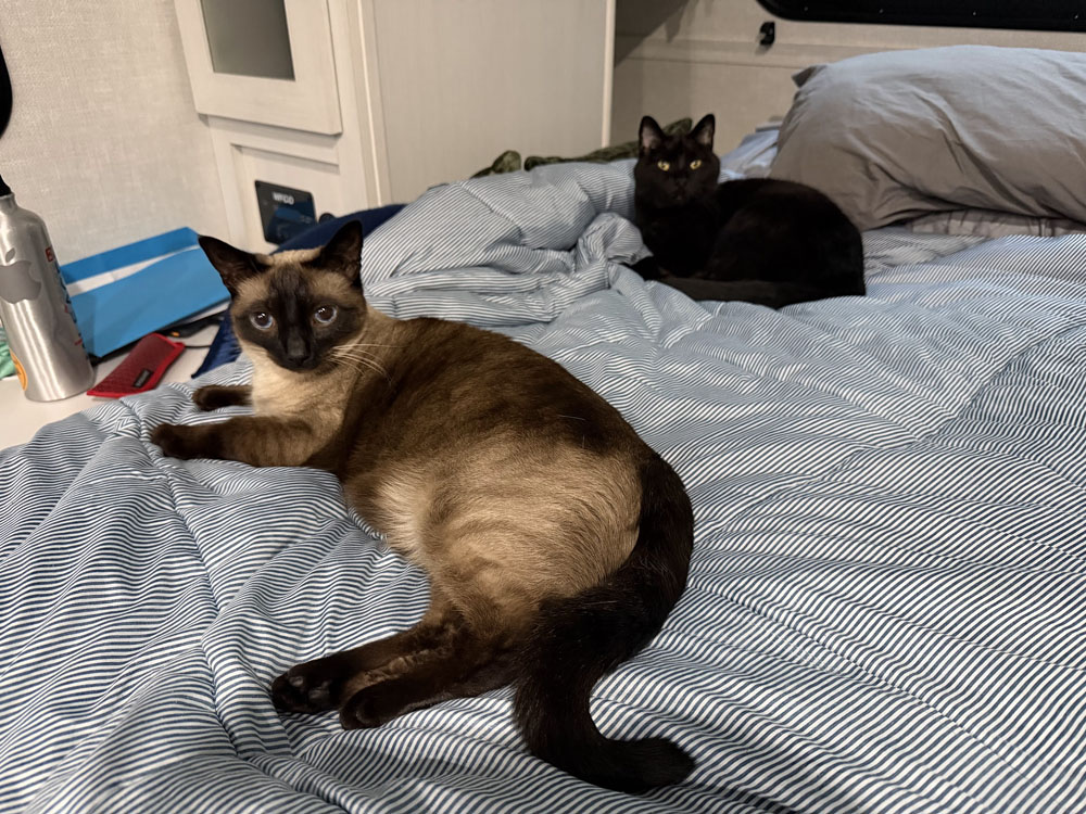 The cats have been behaving well when we were all in the camper.. I’m not sure how they got along when we were gone for the day! I wish they did better in the truck. They aren’t the biggest fans of being in their carriers and driving!