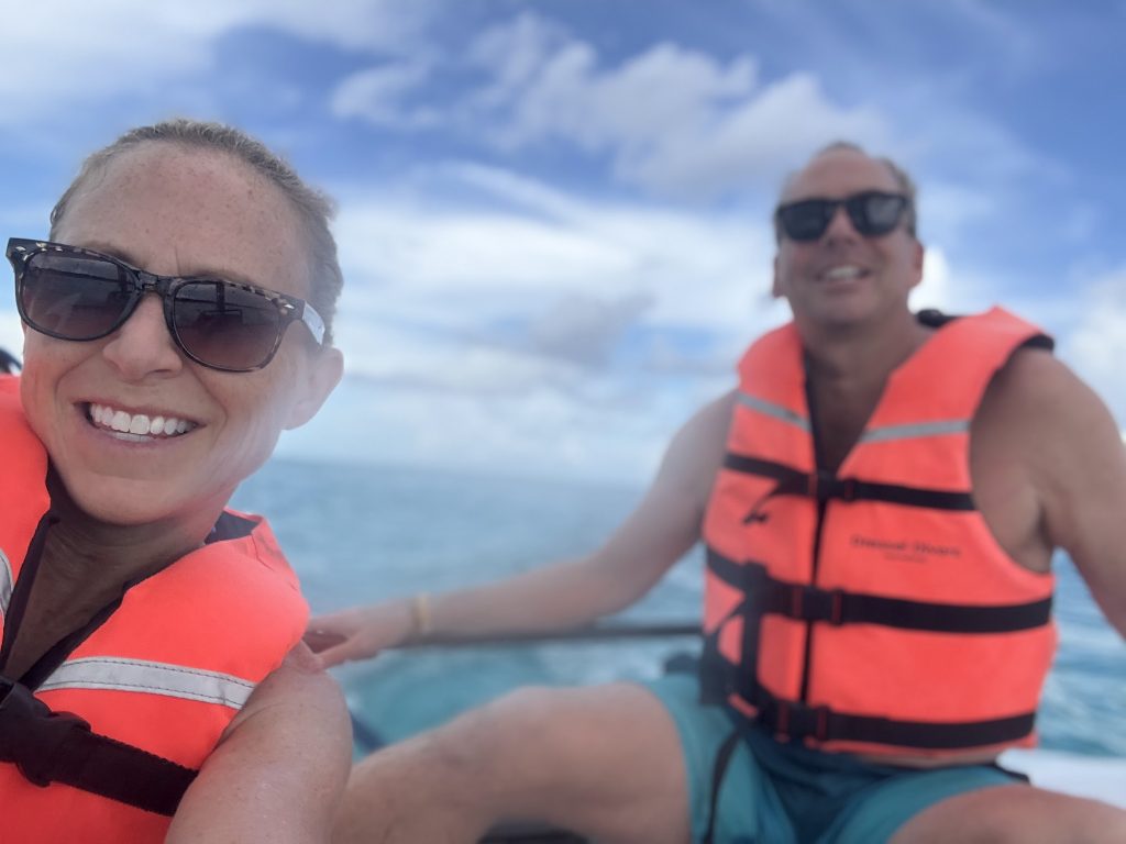 Sailing – Alan has been sailing catamarans for the last 25 years but this was the first time we had to be towed back in due to lack of wind!! It was humbling, but we were told that it happens frequently so then we didn’t feel too bad about it! I always wondered what would happen if you couldn’t get the catamaran back to the hotel, and now we know!