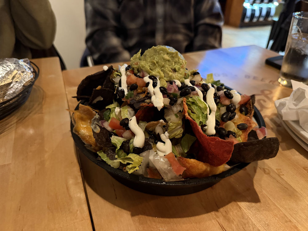 But the afternoon was good when we found areas of the mountain with less crowds. It was a full day of skiing (my 18th day of the season!) and we had dinner in the town of Stowe. The nachos were delish!