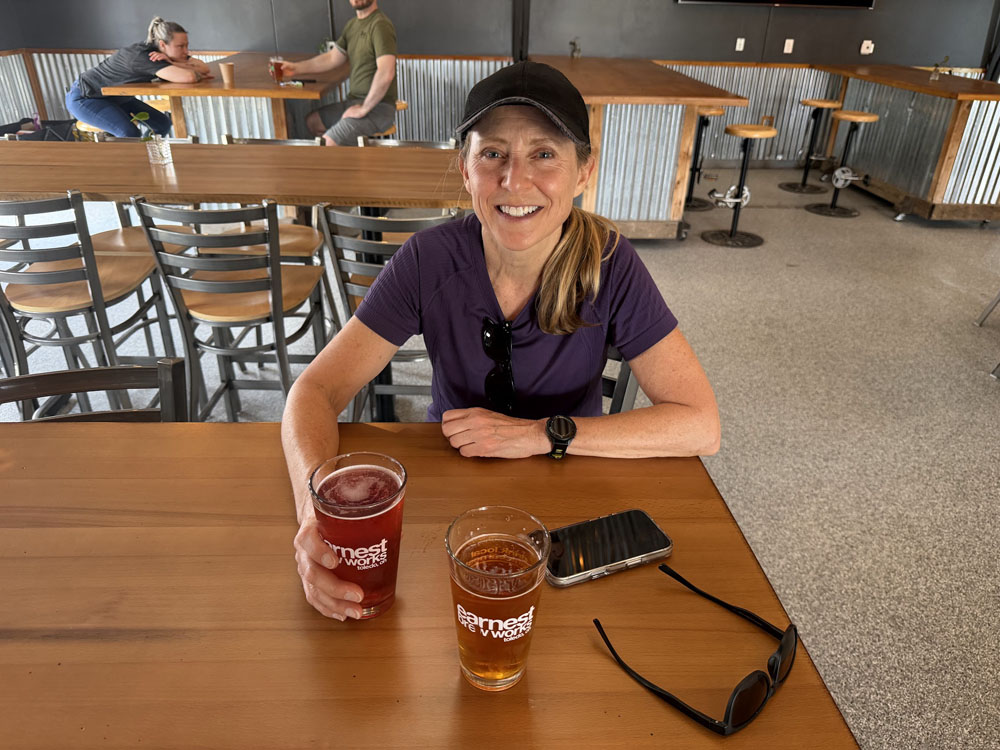 Sun – 12 miles mountain biking. We did the “long” trail today, which I have only done a handful of times. It was long indeed! By the time we made it back to the start we were starving. A food truck was there and we had a beer. Funny thing was we saw our daughter’s boyfriend who rode 50 miles that day. After each loop his group of friends rested and hydrated with beer.. OMG, after just one beer I was ready to go home and nap. I can’t even imagine all of that riding and beer. I certainly could not hang with that group!